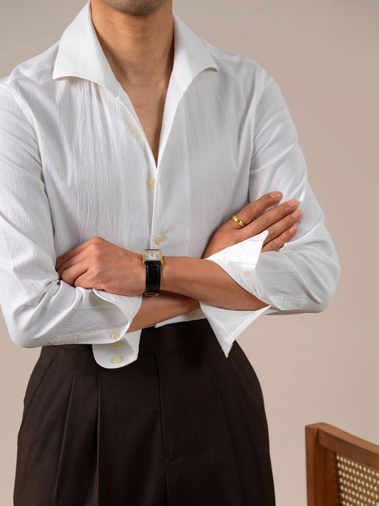 Men’s Breathable Bubble Cotton Gauze Italian One-Piece Collar Shirt