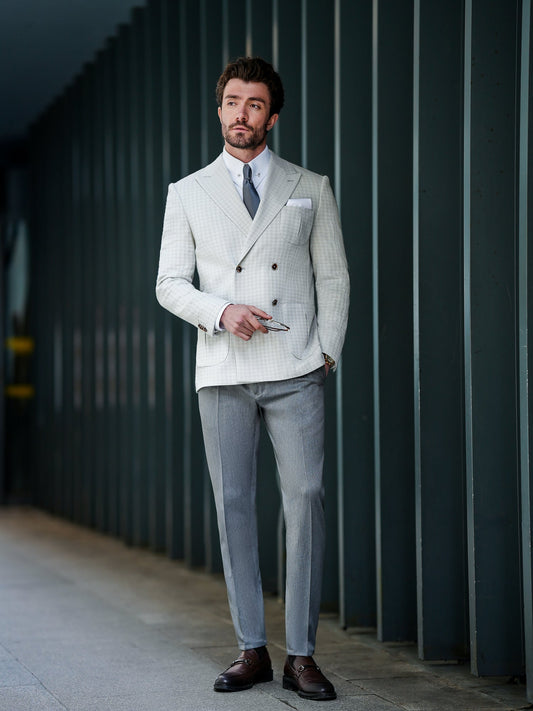 Light Grey Houndstooth Double Breasted Blazer