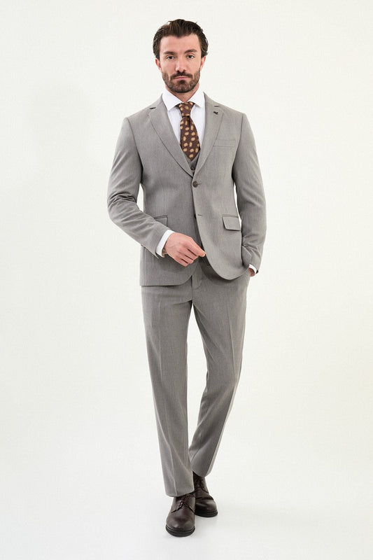 Men's Light Gray Three-Piece Wool Suit
