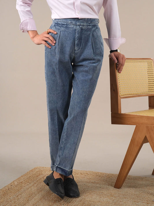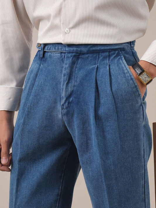 Men’s Double-Pleated Straight-Leg Vintage Jeans