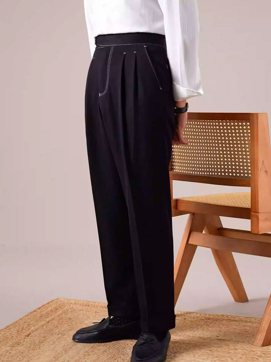 Italian Neapolitan High-Waisted Double-Pleat Men's Trousers