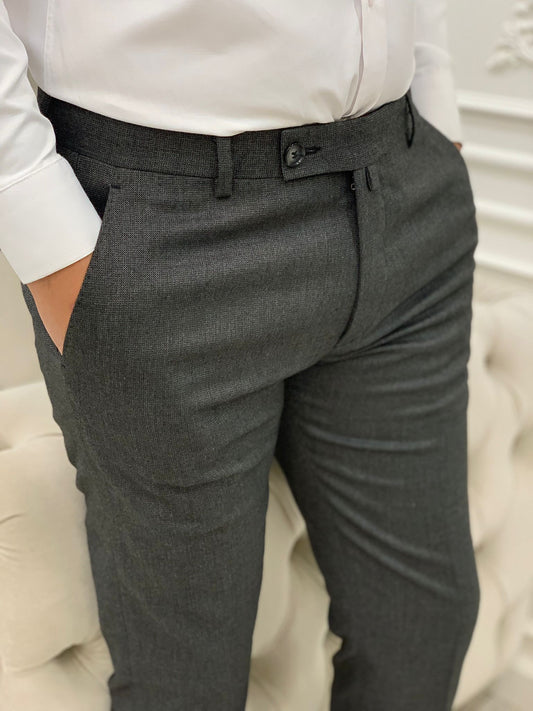 Benjamin Slim Fit High Quality Gray Patterned Anthracite Pants