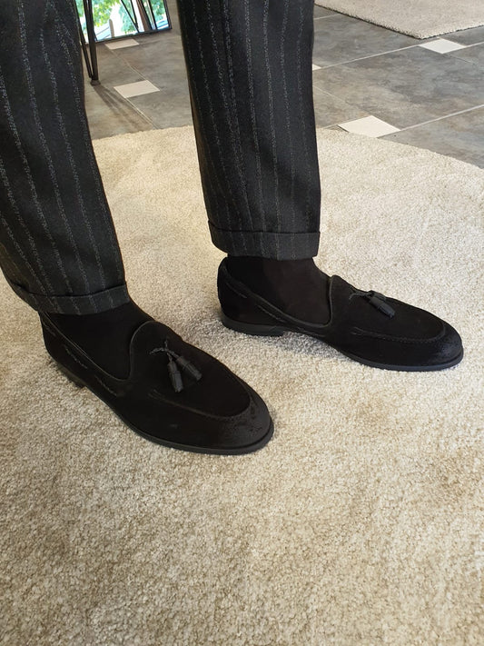 Stefano Black Suede Tassel Loafers: The Ultimate in Elegance and Comfort