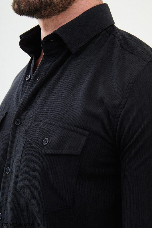 Brabion Nico Black Slim Fit Double Pocket Corduroy Shirt