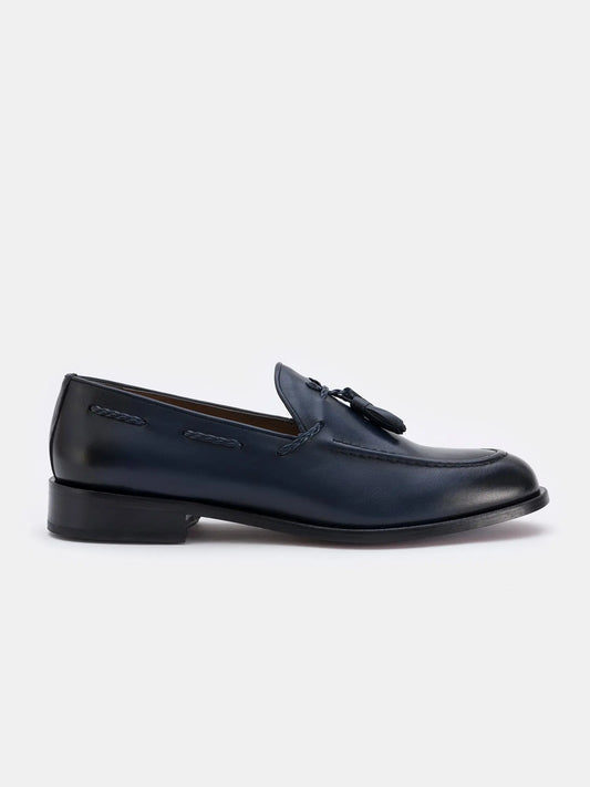 Navy Leather Tasselled Loafers