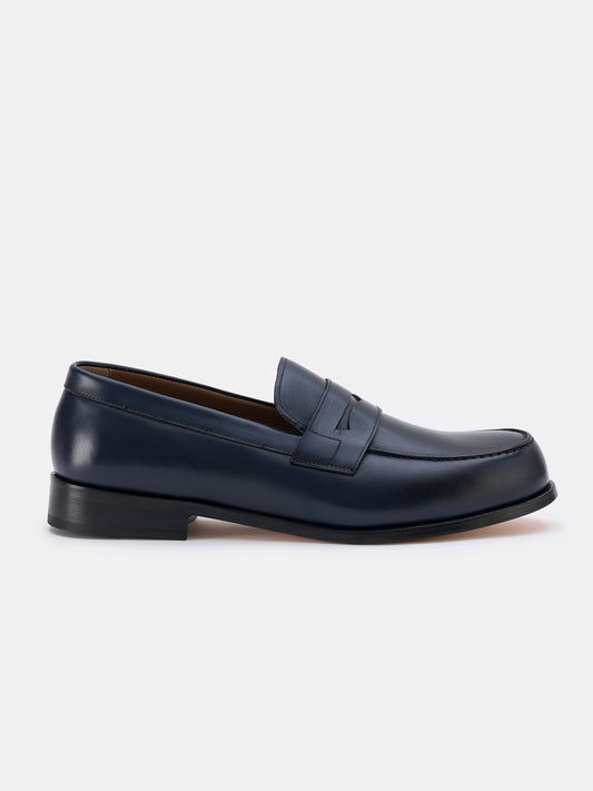 Navy Leather Penny Loafers