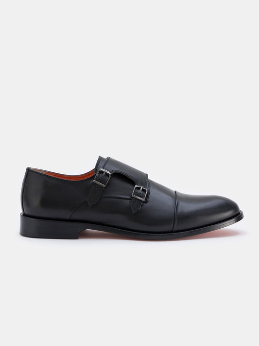 Black Leather Double Monk Strap Shoes