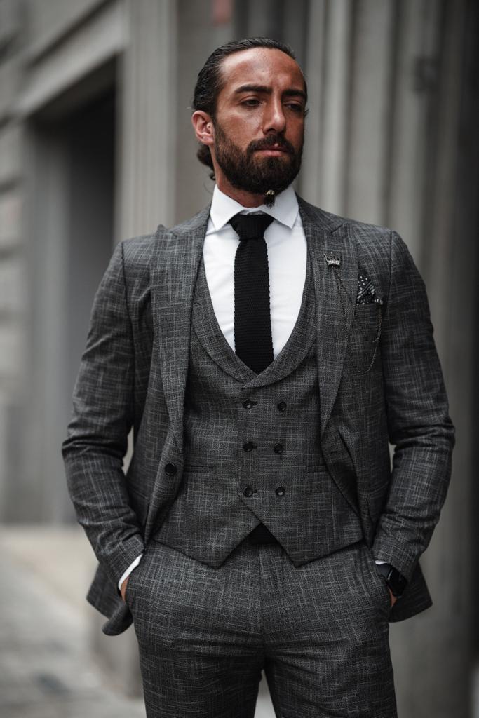 The Evo Dark Gray Slim Fit Crosshatch Suit is designed for the modern man who values both elegance and versatility. Crafted from a quality blend of materials, this three-piece suit is perfect for a business meeting, wedding, or any formal event. Its tailored slim fit offers a contemporary silhouette, ensuring you look your best while enjoying the comfort of its flattering cut. With double slits and a stylish one-button front, this suit exudes sophistication for all occasions.
