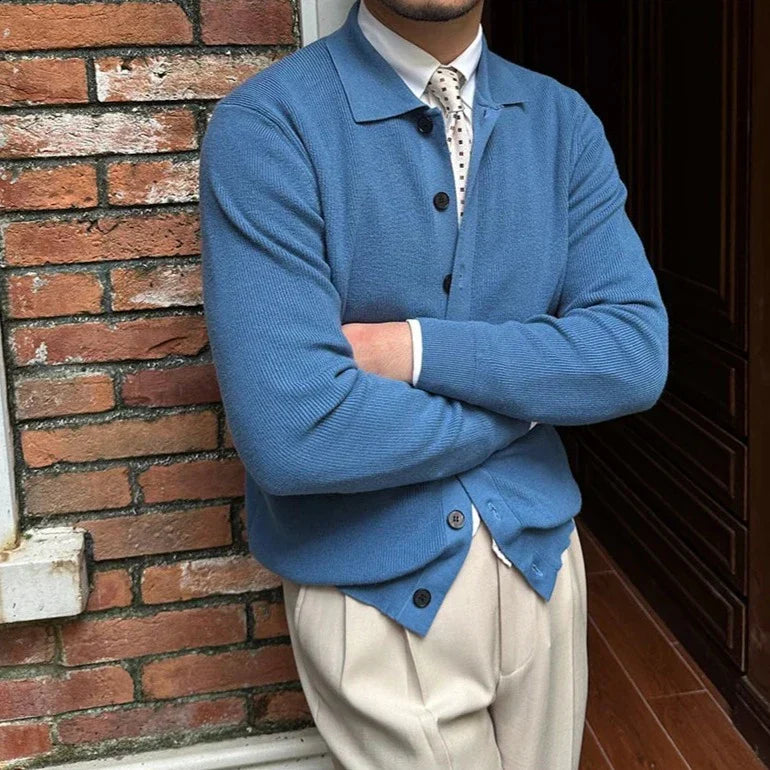 Introducing the Buttoned Knit Cardigan, an essential piece for a versatile men's wardrobe. Made from high-quality polyester, this cardigan offers comfort and style year-round. With a single button closure and a turned-down collar, it is perfect for shopping activities and casual occasions.