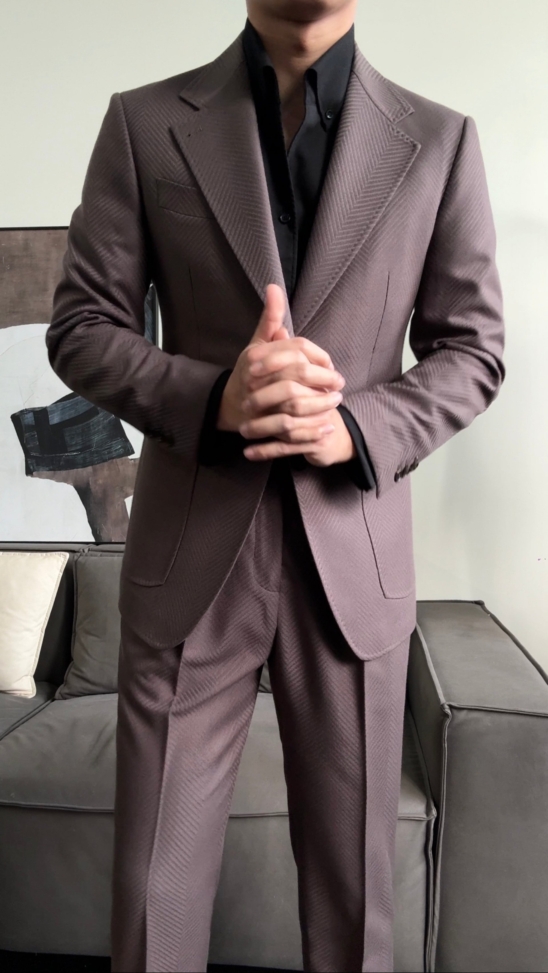 • Single-breasted herringbone design