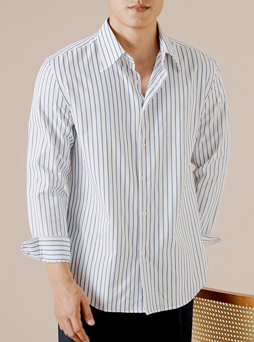 Look sharp with less effort — a slim-fit striped shirt built for breathable comfort and a clean, put-together finish.