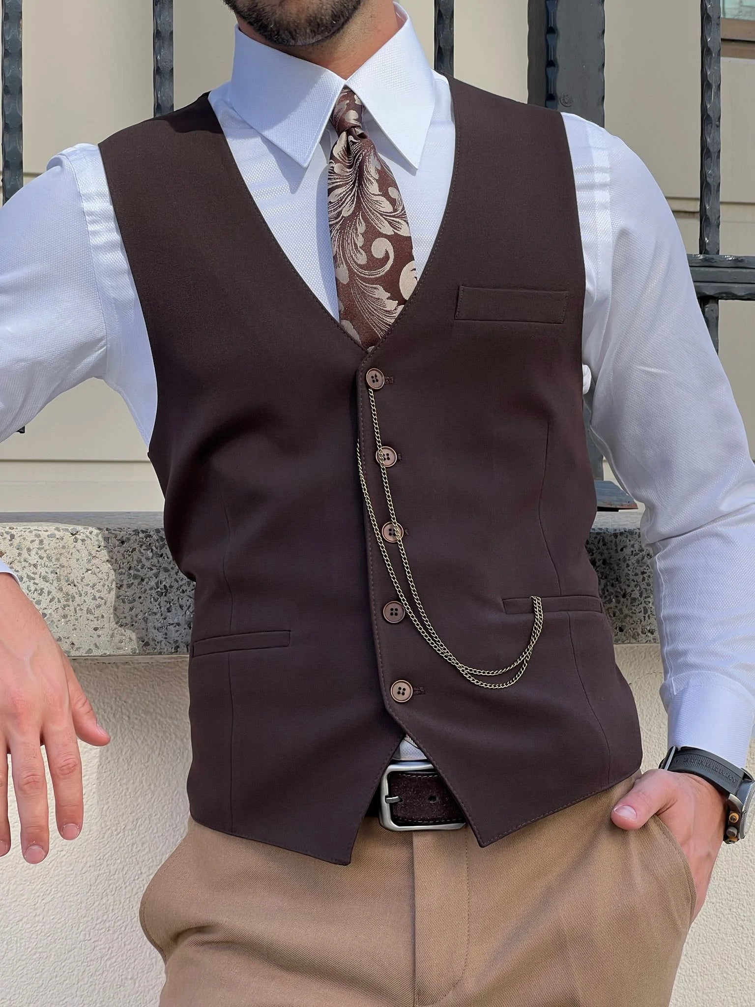 Stefano Slim Fit Woolen Brown Men's Vest: The Ultimate Versatile Layering Piece